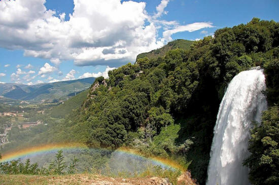 Marmore waterfalls (Cascate delle Marmore)The cascate delle Marmore are in fact a man-made spectacle. The Romans created the falls by building a canal to control flooding of the towns above the falls, and the canals and various earthworks continued to be elaborated until well into the 19 C. Since then the bulk of the flow has been used for industrial purposes and the falls flow only twice per day. It's therefore important to time your visit appropriately. Worth a visit. More about the Cascate delle Marmore. |